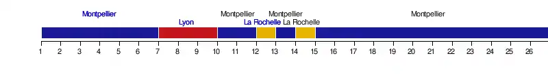 | Montpellier | 1 | 1 | 1 | 1 | 1 | 1 | 2 | 2 | 2 | 1 | 1 | 2 | 1 | 2 | 1 | 1 | 1 | 1 | 1 | 1 | 1 | 1 | 1 | 1 | 1 | 1 |