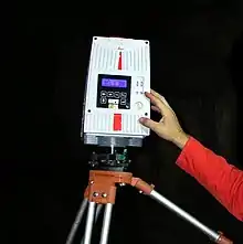 Télémètre laser et l'ordinateur de terrain utilisés pour des relevés topographiques, technologie « Field-Map ».