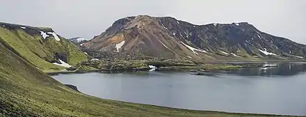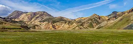 .jpg.webp) Canyon à Grænagil et la montagne Bláhnúkur. Canyon à Grænagil et la montagne Bláhnúkur.