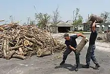 En mai 2012, la Garde nationale du Missouri a publié des documents montrant que quatre soldats ont pillé le matériel de jeu vidéo et un appareil photo numérique dans le Walmart détruit lors du nettoyage du site. Selon l'enquête, ils croyaient que la marchandise allait être détruite. Ils furent tous rétrogradés et reçurent une lettre de réprimande à leur dossier personnel mais ne furent pas poursuivis même si de nombreux pillards civils le furent[28].