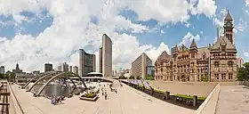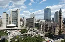 L'hôtel de ville de Toronto se situe en centre ville, au 100 Queen Street West[25]. Conçu par l'architecte finlandais Viljo Revell, il est inauguré en 1965 et est devenu un emblème de la ville. Il compte notamment onze grandes salles dont la Chambre du Conseil, qui sont aussi disponibles pour les groupes sans but lucratif et de bienfaisance[26].
