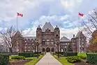 Au cours de son histoire, Toronto a été choisie à deux reprises comme capitale de la province du Canada : une première fois entre 1849 et 1852, à cause de l'attentat et la destruction du parlement à Montréal, puis une deuxième fois entre 1856 et 1858[10]. Lors de la création de la province de l'Ontario en 1867, Toronto en est choisie comme capitale par la Confédération canadienne[11]. Le siège de l'Assemblée législative et du gouvernement de l'Ontario est situé dans Queen's Park. La ville de Toronto accueille également du fait de son statut de capitale provinciale la résidence du lieutenant-gouverneur, représentant de la Couronne.