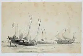 Des toups à coque occidentale ont été utilisés par les Néerlandais pour être armé en navire de guerre dans cette région[4].
