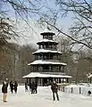 La tour chinoise du jardin anglais de Munich est une construction en bois de style pagode chinoise. Elle a été construite en 1789/1790 par Johann Baptist Lechner suivant les plans de Joseph Frey. La tour de 25 mètres de haut a une forme polygonale, est composée de 5 étages, avec un diamètre allant de 19 mètres en bas jusqu'à 6 mètres en haut. Les différents étages sont reliés par un escalier en colimaçon. Chaque étage a un toit ondulant auquel pendent des cloches dorées.