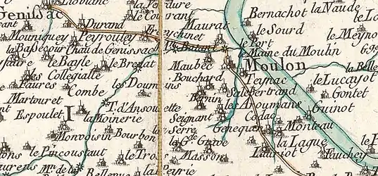 - À la fin du XIVe siècle, la Motte de Moulon appartenait à la famille d'Albret. En 1377, Bérard d'Albret en avait disposé en faveur de l'épouse de Guillem de Faubornet.