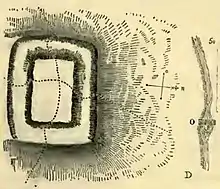 Cette forteresse ne comportait qu'une tour et des bâtiments en bois, des palissades ou des haies vives garnissant les talus. Il n'y avait pas de constructions en pierre. Près de ce fort, au bas de la côte, se trouve une source très abondante, et non loin de là Léo Drouyn a trouvé des tuiles à rebord et une pointe de lance qui paraissent d'origine gallo-romaine[4].