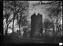 Cette tour appartient à la ruine d’un château construit après 1177 et incendié en 1476, puis restauré et habité jusqu'en 1641[1]. Il ne subsiste que la tour cylindrique, dont les vestiges ont été restaurés en 1899[2].