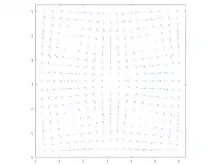 En mécanique des fluides le tourbillon de Taylor-Green est une solution analytique périodique des équations de Navier-Stokes en incompressible et en deux dimensions d'espace. Il décrit un ensemble de tourbillons qui s'amortissent avec le temps. Il a été décrit par Geoffrey Ingram Taylor et Albert Edward Green[1] et est utilisé comme benchmark pour les méthodes numériques et comme conditions initiales pour l'étude des problèmes de transition vers la turbulence.