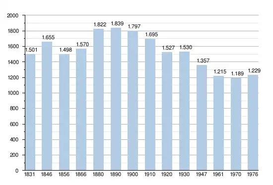 - Sources:INS, Rem:1831 jusqu'en 1970=recensements, 1976= nombre d'habitants au 31 décembre