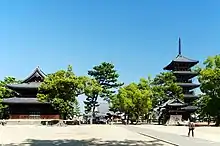 - Nara - Tōdai-ji, Tōshōdai-ji, Kōfuku-ji, Yakushi-ji, palais de Nara, Kasuga-taisha, et cetera, elles font partie de Monuments historiques de l'ancienne Nara (PM)[21]