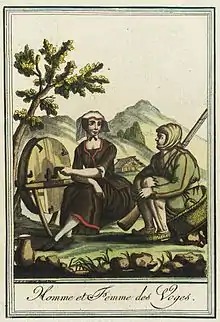 Dans le sillage de l'irlandais Colomban qui fonde aux portes des Vosges un monastère à Luxeuil en 590[35], ou de Romaric qui fonde en 620 l'Abbaye du Saint-Mont, durant tout le Moyen Âge et jusqu'à la Révolution, les Vosges compteront une multitude d’abbayes, de couvents, de monastères et de prieurés[36]. On y trouvait des Bénédictins, des Dominicains, des Prémontrés, des Capucins ou des Cisterciens.