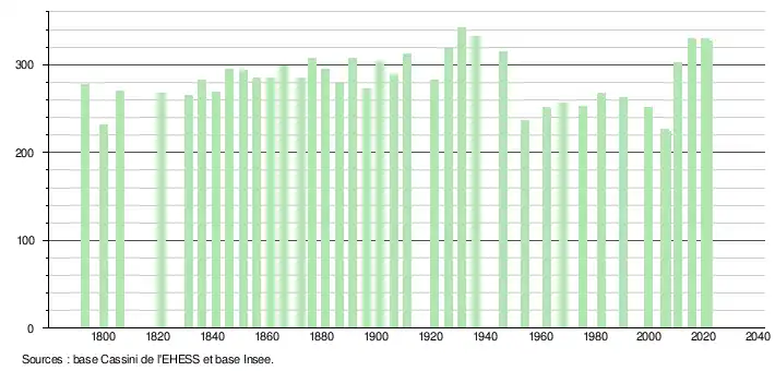 - Fiches Insee - Populations légales de la commune pour les années 2006, 2007, 2008, 2009, 2010, 2011, 2012, 2013, 2014, 2015, 2016, 2017, 2018, 2019, 2020 et 2021.