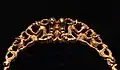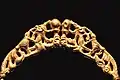 Les anneaux de cou sont munis d'attaches. Avec trois anneaux, toute la partie centrale décorée peut être éteinte par un joint à rotule. En face de l'articulation, la partie centrale ouverte est insérée par une goupille dans la partie arrière lisse et y est maintenue par une goupille de verrouillage. Avec le quatrième anneau, un segment d'anneau autour d'un quart de cercle sert d'ouverture. Le segment décoré est maintenu en position par une petite épingle sur le front d'une créature mythique.