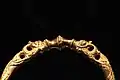 Chaque bracelet pèse un peu moins de 50 grammes. Deux des trois bracelets forment une paire, ils ne diffèrent que dans les détails. Le motif frappant ici est le chien qui court, un motif qui remonte à l'artisanat antique classique[4]. Le troisième anneau correspond stylistiquement au quatrième collier.