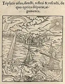 Il aborde aussi le problème de la vision binoculaire[18],[33],[34], énonçant une première version de ce qui deviendra la loi d'Hering d'égale innervation (en)[35]. Il se penche sur l'illusion lunaire pour l'expliquer par de mauvaises appréciations des distances et des référentiels plutôt que par la réfraction[36].