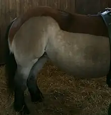 Le rein doit être court et large[2], très musclé[27],[7], la croupe, généralement « double » et massive[27],[7] doit être large et puissamment musclée, moyennement oblique. La queue est bien implantée, pourvue de crins assez fins[2].