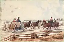Les commerçants de fourrure français Médard Chouart des Groseillers et Pierre-Esprit Radisson sont à l’origine de la création de la Compagnie de la Baie d’Hudson[18]. À la suite du refus de la France d’appuyer l’entreprise, les deux hommes se rendent en Angleterre en 1665 et sollicitent l’appui du Prince Rupert, cousin de Charles II[19]. Ce dernier persuade le roi ainsi que plusieurs marchands et nobles de financer l’entreprise[20]. La compagnie, d’abord nommée la Compagnie des aventuriers d’Angleterre, fait commerce dans la Baie d’Hudson et reçoit le droit exclusif de la traite de fourrures dans le territoire environnant celle-ci (Terre de Rupert)[21]. Le commerce des fourrures impacte le mode de vie des peuples autochtones. Leur participation à la traite de fourrure entraîne la perte de leur mode de vie et de leur économie traditionnels; nombreux quittent leur territoire traditionnel, en quête d’animaux à fourrure et pour se positionner favorablement en vue de la traite et des échanges. Jusqu’en 1763, la Compagnie de la Baie d’Hudson lutte avec les Français en vue de contrôler la traite des fourrures dans le sud de la Terre de Rupert. Entre 1713 et 1763, la Compagnie de la Baie d’Hudson construit des postes de traite aux confluences entre des rivières importantes et la Baie d’Hudson. Après le traité de Paris, en 1763, la rivalité entre Anglais et Français laisse place à une compétition bien plus féroce avec la Compagnie du Nord-Ouest. En 1821, la fusion des deux compagnies est organisée et le Parlement britannique confirme et élargit le monopole de la compagnie pour inclure le Territoire du Nord-Ouest[18].