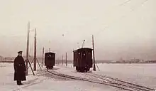 Au cours de l'hiver 1907, le tramway électrique est revenue à Saint-Pétersbourg. Cette fois, ils ont circulé sur des voies posées sur de la glace (pendant la saison d'hiver) recouvrant la Neva. Une entreprise de transport publics électriques a été formée, et plusieurs lignes traversant le fleuve en divers endroits ont été exploitées. Car si la Horsecar Stock Company possédait le monopole du transport sur voie ferrée dans les rues, en revanche, elle ne disposant d'aucun titre lui assurant l'exclusivité à la surface des cours d'eau gelés.