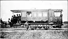 - quatre voitures à deux essieux de 40 places (20 places assises, plus 10 debout sur chacune des plates-formes ouvertes aux deux extrémités) provenant de la transformation des automotrices Serpollet pour trois d'entre elles (la quatrième aurait été fournie par les établissements Serpollet en contrepartie de la non exécution de ses engagements)[43].