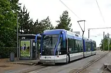 |   Deux rames se croisant au terminus Hérouville Saint-Clair de la ligne B. | ||
