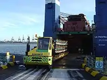 - les navires à pont ouvert, chargeant leur cargaison par une rampe arrière.