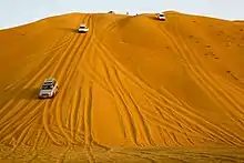 Les véhicules tout-terrain sont prisés par les autochtones comme par les expatriés. Ils sont en effet indispensables pour traverser certaines régions ou explorer les wadis. Le wadi bashing et le dune bashing – c'est-à-dire du hors piste – sont des activités volontiers pratiquées par les amateurs de sensations fortes[2]. Les circuits touristiques organisés par les voyagistes consistent parfois en randonnées pédestres, mais se font le plus souvent, au moins partiellement, au moyen de tels véhicules.
