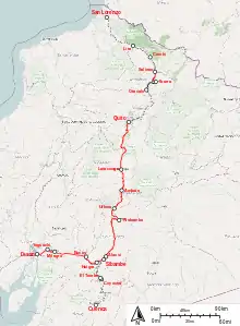 Historiquement, le premier moyen de transport moderne qui a parcouru l'Équateur a été le train, qui a relié Quito à Guayaquil via Riobamba et Alausí, inauguré en 1908. Cette ligne a été considérée comme la plus difficile du monde, de par la topographie andine et la descente abrupte vers la côte[1]. Un tronçon nord reliant Quito à Ibarra est inauguré en 1929[2], puis prolongé en 1957 jusqu'à San Lorenzo (Équateur) (en)[1]. La dernière ligne importante, celle atteignant Cuenca, est terminée en 1965 mais ne sera jamais desservie par un service fiable[3]. En 1994, la plupart de ces tronçons sont abandonnés car non rentables face à la concurrence de la route, seul étant maintenu le trajet entre Ibarra et San Lorenzo pour lequel il n'existait pas de solution routière[1]. Depuis l'achèvement de la route entre Ibarra et San Lorenzo, le chemin de fer en Équateur n'est plus exploité à des fins de transport de passager, mais certains tronçons sont maintenus à des fins touristiques, par exemple entre Ibarra et Lita ou entre Riobamba et la Nariz del Diablo, passage spectaculaire où la ligne la plus difficile du monde perd rapidement de l'altitude grâce à une descente en lacets.