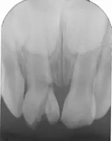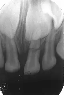 Fracture radiculaire : fracture de la dentine, du cément et de la pulpe avec ou sans déplacement du fragment coronaire. Dans ce cas une mobilité axiale et/ou latérale de la dent avec une élongation coronaire survient[1], plus ou moins prononcée et une gêne à l'occlusion.