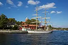 ![]() Le Tre Kronor à son port d'attache à Stockholm (Suède) | ||