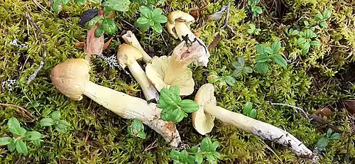 Tricholoma aestuans, le Tricholome enflammé[1], est une espèce de champignons (Fungi) Basidiomycètes du genre Tricholoma. Il produit un sporophore de taille moyenne comportant un chapeau conique, jaunâtre et fibrilleux-soyeux, aux lames jaune pâle et à la chair d'un goût amer prononcé. Cette espèce forme des ectomycorhizes avec les Pins et les Épicéas poussant sur sols pauvres en nutriments et peut être localement abondante dans la taïga, au Nord de l'écozone holarctique. Au Sud de ce biome, elle se maintient aux altitudes élevées comme dans les Alpes et les Carpathes. Sa consommation provoque des troubles gastriques et digestifs[5].