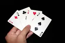 Du fait de l'évolution différente des jeux de cartes en Europe, le trois n'apparait pas dans toutes les régions :