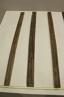 Les découvertes archéologiques récentes permettent d'apporter une meilleure connaissance sur la période des Trois Royaumes, même si la chronologie est difficile à affiner. Il est en effet compliqué de faire la différence entre d'une part les sites de la fin des Han et ceux des débuts des Trois Royaumes, et d'autre part de ceux de la fin des Trois Royaumes et de la période des Jin occidentaux en raison du faible laps de temps écoulé entre ces époques, qui n'a pas vu la culture matérielle évoluer de façon substantielle. Les sites fouillés et datés du IIIe siècle sont essentiellement des tombes[6]. Les découvertes archéologiques apportent également de nouvelles sources écrites : des dizaines de milliers de documents administratifs rédigés sur des tablettes de bois et des lamelles de bambous ont été retrouvés en 1996 à Zoumalou près de Changsha (Hunan), concernant le royaume de Wu (lamelles de bambou de Zoumalou) ; en quantité il s'agit du plus important corpus de textes retrouvé par des archéologues en Chine[7],[8].