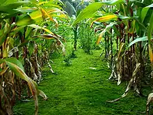 Au Mexique, cette technique maya est appelée « milpa », terme dérivé de la phrase en nahuatl mil-pa signifiant « Ce qui est semé dans les champs »[8] (du Nahuatl mil-li « champ » + -pa « vers »)[9].
