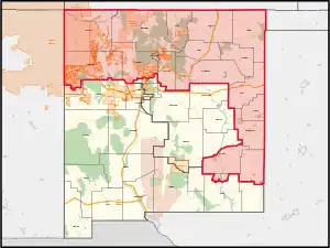 Colfax, Curry, Harding, Los Alamos, Mora, Quay, Rio Arriba, San Juan, San Miguel, Taos, et Union, et des parties de Bernalillo, McKinley, Roosevelt, Sandoval et Santa Fe | |||||