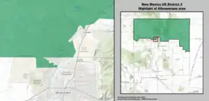 Le 3e district congressionnel du Nouveau-Mexique dessert la moitié nord du Nouveau-Mexique, y compris la capitale de l'État, Santa Fe. Le district a une présence amérindienne importante, englobant la majeure partie de la partie du Nouveau-Mexique de la Nation Navajo, située dans le coin nord-ouest de l'État, et la plupart des réserves des peuples Puebloans[1]. La Représentante actuelle est la Démocrate Teresa Leger Fernandez.