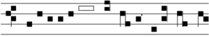 Historiquement, les Si du troisième mode tendent à monter au do, conduisant finalement à une structure BAB* ou BAqC* (voir modalité grégorienne). Sur l'exemple ci-dessus, la structure apparente BAqC* résulte d'une montée du Si, comme le montre le podatus d'accent resté en position si-do.