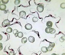 - Trypanosomiase humaine africaine : maladie du sommeil. Elle est provoquée par deux sous espèces de Trypanosoma brucei : T. b. rhodesiense et T. b. gambiense[1].