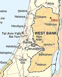 Tubas (arabe : طوباس) est une ville palestinienne située à environ 21 km au nord de la ville de Naplouse, sur la partie occidentale du gouvernorat de Tubas au nord de la Cisjordanie, près du Jourdain[2]. La ville, qui compte plus de 16 000 habitants, est considérée comme le centre administratif et économique du gouvernorat de Tubas. Son aire urbaine se compose de 2 271 dunums (227 hectares). Elle est régie par un conseil municipal de 15 membres et la plupart de ses habitants sont employés dans le domaine de l'agriculture ou les services publics. Ouqab Daraghmeh a été le maire de Tubas depuis son élection en 2012[3],[4].
