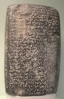 « Des tablettes [...], de la sagesse scribale [...], des textes d'exorcisme [...], des prières pour apaiser les dieux [...], des textes divinatoires [...], les signes omineux du ciel et de la terre, des textes médicaux, des procédures pour soigner (litt. bander) [...], les registres de recrutement de ses ancêtres [...], les documents [...], des esclaves, surintendants, soldats [...]: pas un seul [texte] n'a été laissé dans le pays de Sumer et Akkad ! »