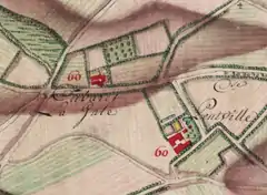 Le tumulus de Penteville au carrefour dit de "la Gate" (carte de Ferraris)
