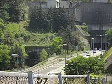 |   Vue des deux tubes du tunnel côté Tokyo en 2009. | ||
