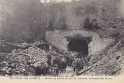Après le début des hostilités, le tunnel de Tavannes est désaffecté. Sa situation géographique en fait une zone de passage sécurisé entre la partie nord-est du front de Verdun et l'arrière. Afin d'améliorer la sécurité, la création d'un passage souterrain entre le tunnel et le fort de Tavannes a été étudié mais non réalisée.
