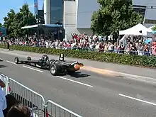Probablement moins connu du grand public, les turboréacteurs trouvent quelques applications sur les véhicules terrestres. Le Thrust SSC, véhicule terrestre supersonique détenteur du record absolu de vitesse au sol avec une moyenne à 1 227,985 km/h, est propulsé par deux turboréacteurs à postcombustion développant une puissance d'environ 106 000 ch[16]. Des versions turbo-motorisées des dragsters, dénommées jet-cars, existent également, mais celles-ci ne peuvent participer à aucun championnat et ne font l'objet que de démonstrations.