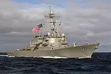- (en) Cet article est partiellement ou en totalité issu de l’article de Wikipédia en anglais intitulé « USS Mitscher (DDG-57) » (voir la liste des auteurs).