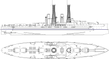 | Blindage | Ceinture blindée = 229-279 mm Casemate haute = 203–254 mm Casemate basse = 127 mm Barbettes = 102-254 mm Tourelles (face) = 305 mm Château = 292 mm Pont = 51 mm  |