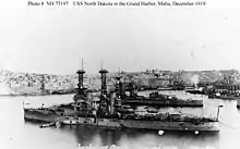 Le , le North Dakota quitte Norfolk en transportant la dépouille de l'ambassadeur d'Italie aux États-Unis, Vincenzo Macchi di Cellere (en), qui est décédé le à Washington, DC. Le navire fait halte à Athènes, Malte, Constantinople, Valence, et Gibraltar lors de la croisière en mer Méditerranée. Il revient par la suite aux États-Unis et participe à des manœuvres de la flotte dans les Caraïbes au printemps de 1920. En , il est présent durant les essais de bombardement conjoint US Army-US Navy, où le cuirassé SMS Ostfriesland et le croiseur SMS Frankfurt, cédés aux États-Unis, sont coulés dans une démonstration de puissance aérienne. Le North Dakota reprend par la suite une routine normale en temps de paix composée d’exercices et d’entraînements, y compris deux croisières de formation des midshipmen au cours des étés 1922 et 1923. Cette dernière croisière fait route vers les eaux européennes et visite l'Espagne, l’Écosse et la Scandinavie[5].