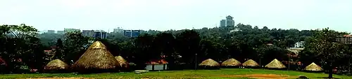 À l'arrière du bâtiment du musée de l'Ouganda se trouve le village culturel, avec des huttes illustrant les modes de vie traditionnels des habitants de l'Ouganda. Pour les visiteurs qui souhaitent découvrir les coutumes indigènes du peuple ougandais, de nombreux artefacts sont présentés, tel que des pots à lait en bois (ebyanzi), des récipients en calebasse, de la vannerie, du travail de perles, du travail de la corne, de la céramique, de la coutellerie, de la maroquinerie, de l'armurerie, et des instruments de musique. Ces artefacts sont visibles dans plusieurs huttes, et notamment dans la hutte Bamba, la hutte Batooro, la hutte Bunyoro, la hutte Hima, la hutte Ankole et la hutte Kigezi. Toutes représentant la région occidentale de l'Ouganda. Certains des éléments les plus intéressants de la hutte Tooro sont la literie, en particulier le lit en bois de fortune, la couverture en toile de fond et les tambours royaux. Dans la hutte Ankole qui représente les Banyankole, il y a des ustensiles de cuisine comme des pots, des bols en argile et une pierre à mélanger montrant comment les Banyankole préparaient le pain de mil (Kalo) avant l'invention des fraiseuses. Dans la hutte Hima qui appartient aux Bahima, il y a des gourdes à lait utilisées pour garder le lait et de longues cornes représentant le type de bétail qui dominait les kraals Hima. Il existe également une lotion à base de lait utilisée pour enduire une future mariée.