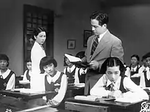 Scène du film avec Shizue Natsukawa, Den Obinata et Haruyo Ichikawa.