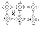 - Dans une pièce secrète du château est écrit, sur un mur, un message crypté par le code des Templiers, le même que celui rédigé sur la couronne. Il s'agit du code secret que les chevaliers ont utilisé pour dissimuler leurs secrets, basé sur le chiffre de Cornelius Agrippa.