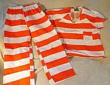 Vers la fin du XXe siècle, les premières combinaisons orange, puis les blouses orange, sont devenues monnaie courante[19]. Dans de nombreux cas, les uniformes de prison sont mieux adaptés au confort et à la durabilité requis pour les détenus de longue durée, et ces nouveaux uniformes sont principalement utilisés dans les prisons locales pour les détenus de courte durée et les délinquants en attente de procès ou de transport vers un établissement plus permanent. Les uniformes rayés, en général, ont fait un retour significatif dans les prisons et le système pénitentiaire pour diverses raisons, telles que la confusion entre les travailleurs en combinaison et les détenus. La combinaison orange est également devenue un symbole international d'abus et propagée par des groupes tels qu'ISIS[20]. Les fausses déclarations de personnes portant des vêtements similaires sont devenues un problème dans certains comtés, de sorte que beaucoup sont revenus à l'utilisation d'uniformes rayés (principalement orange et blanc) en raison de la nature non ambiguë de ces vêtements associés aux détenus[21].